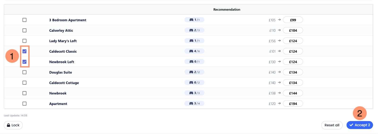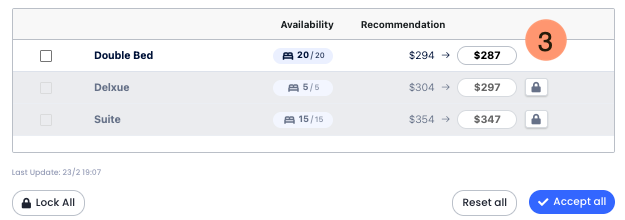 | ⓘ The Accept all button is designed for efficiency, but it will always ignore locked room types. This ensures your manual strategy is never accidentally overwritten during bulk updates. |