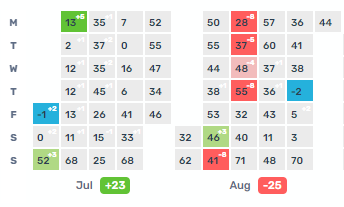 Inmediatamente verás en esta vista una variedad de colores que indican diferentes cambios en tus métricas, los cuales también se muestran como números pequeños en la esquina superior derecha.