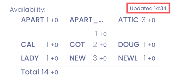 - Cualquier cambio reciente en la disponibilidad (p. ej., +1 indica que una habitación se volvió disponible) desde la fecha/hora de actualización.