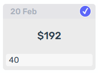 Marca de seleção em laranja: indica que uma tarifa personalizada foi inserida manualmente e aceita. Essa ação bloqueia automaticamente a tarifa para o tipo de acomodação, impedindo que o Autopilot ou ações em bloco substituam sua estratégia manual.