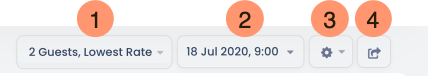 - Hóspedes, Tipo de Tarifa - Permite que você defina o número de hóspedes para comparação de tarifas e escolha entre a tarifa mais baixa disponível ou as melhores tarifas flexíveis (reembolsáveis).