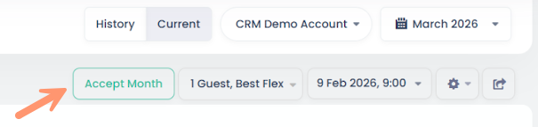 | ⓘ A ação Aceitar Mês irá pular automaticamente quaisquer datas ou tipos de acomodação que estejam Bloqueados. |