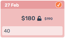 Marca de seleção em laranja: Indica que uma tarifa personalizada foi inserida manualmente e aceita. Essa ação automaticamente bloqueia a tarifa para aquele tipo de acomodação, impedindo que o Autopilot ou ações em bloco substituam sua estratégia manual.