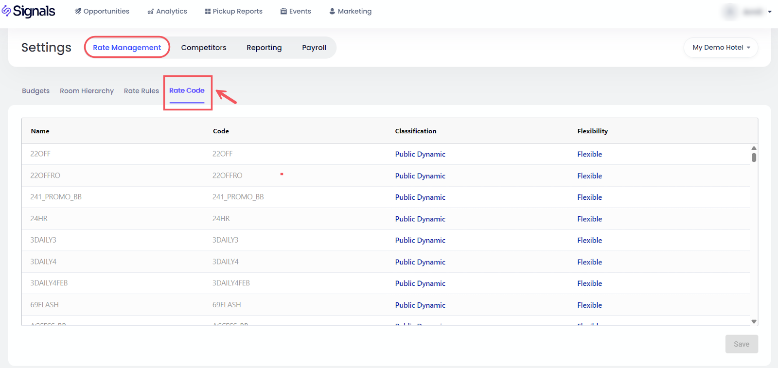 - รหัสอัตรา: จัดประเภทรหัสอัตรา (Public Dynamic, Contracted, Groups, ฯลฯ) และตั้งค่าความยืดหยุ่น (คืนเงิน vs. ไม่คืนเงิน) เพื่อช่วยให้ Revenue Intelligence เข้าใจประเภทความต้องการและปรับปรุงความแม่นยำในการคาดการณ์